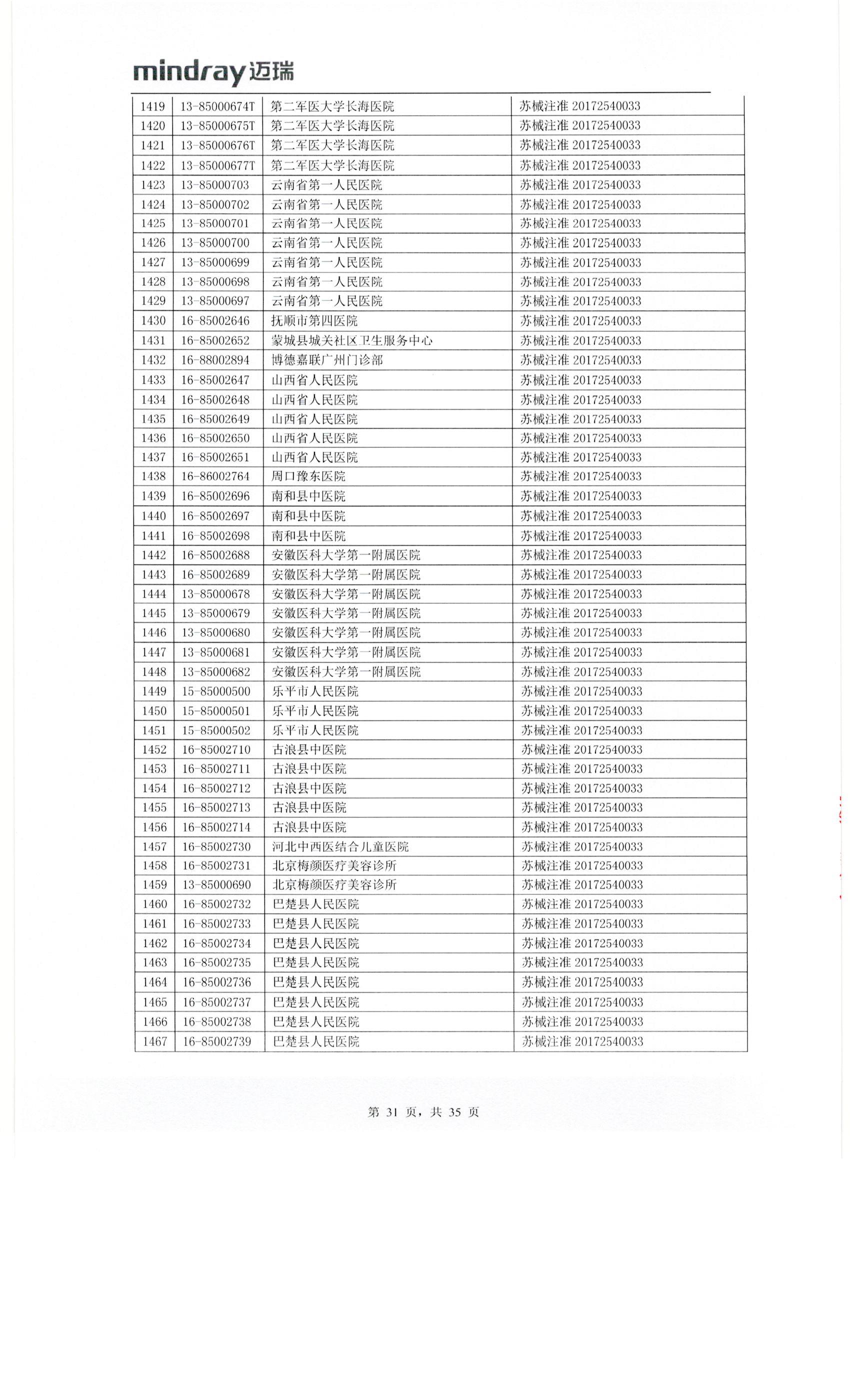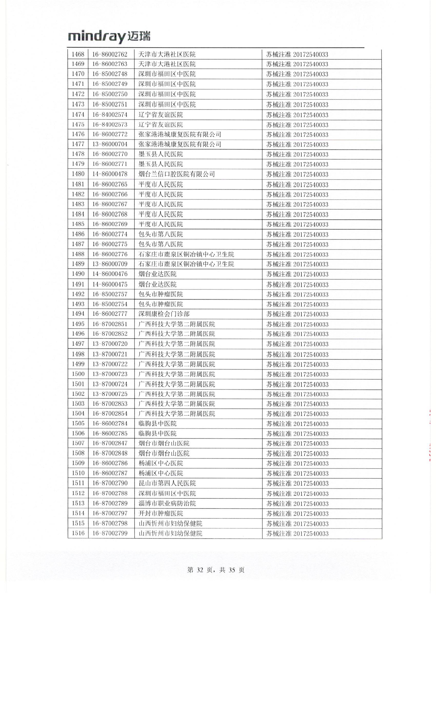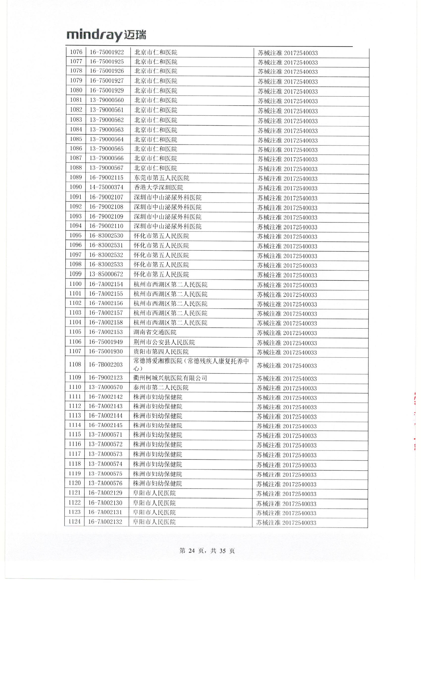 南京迈瑞生物医疗电子有限公司对LED手术无影灯、手术辅助移动式手术照明灯主动召回