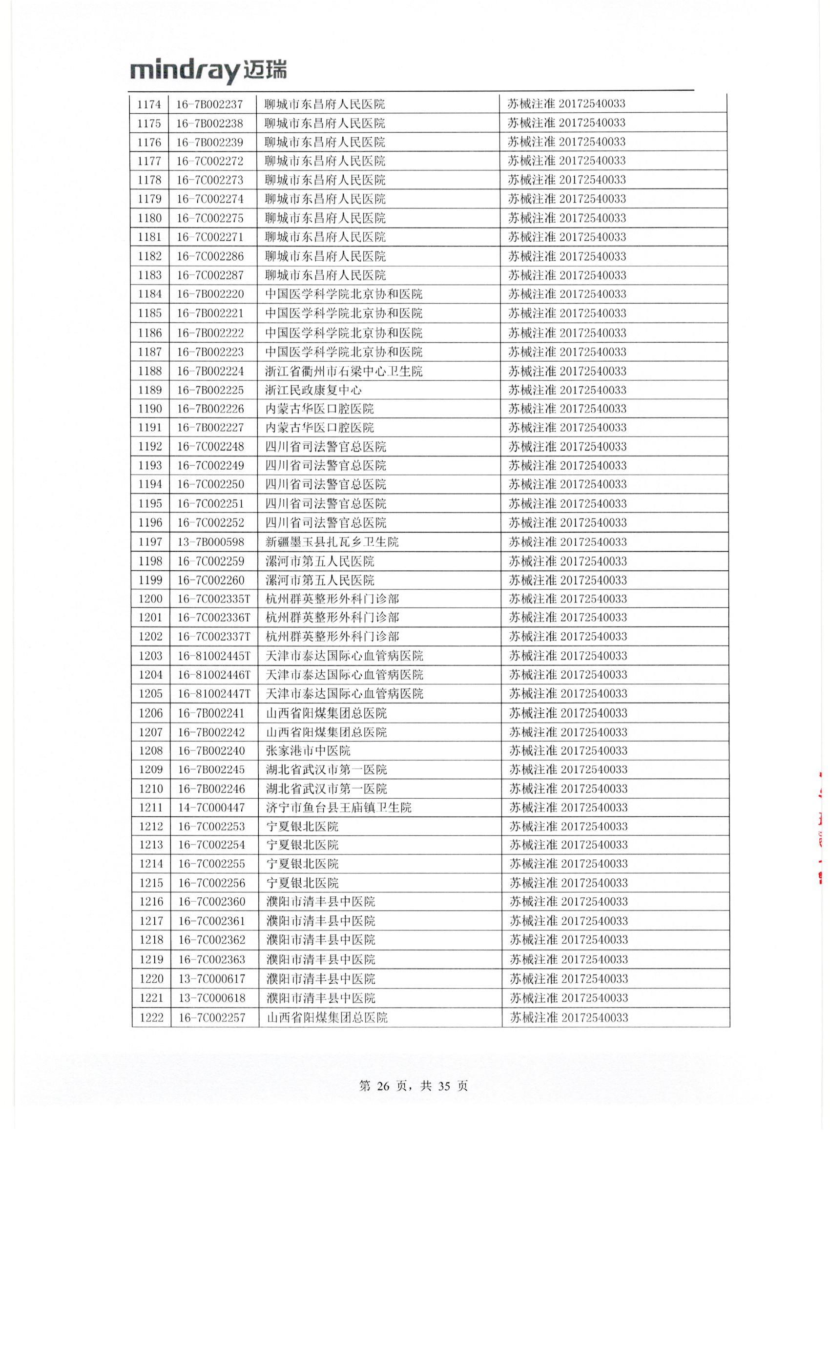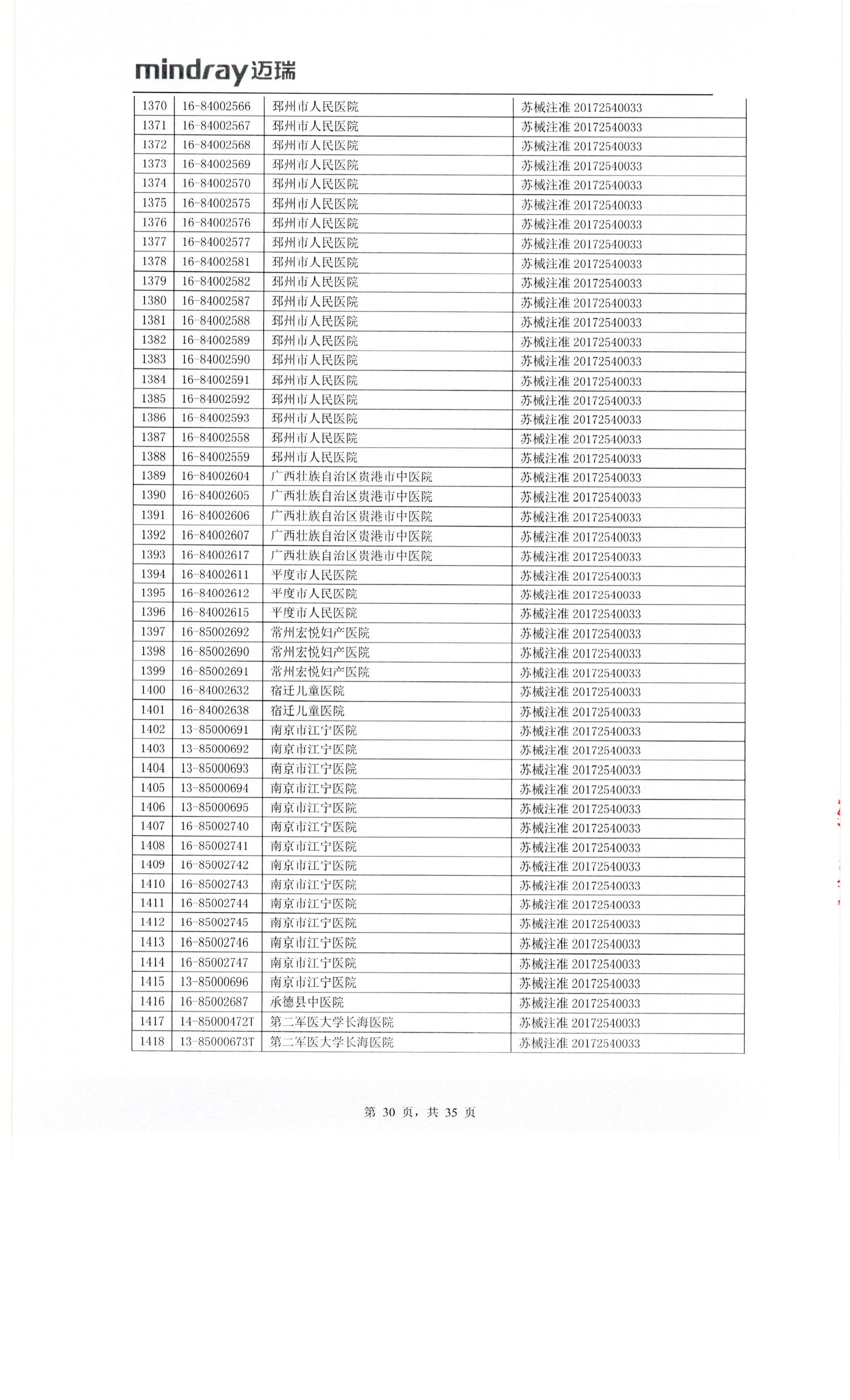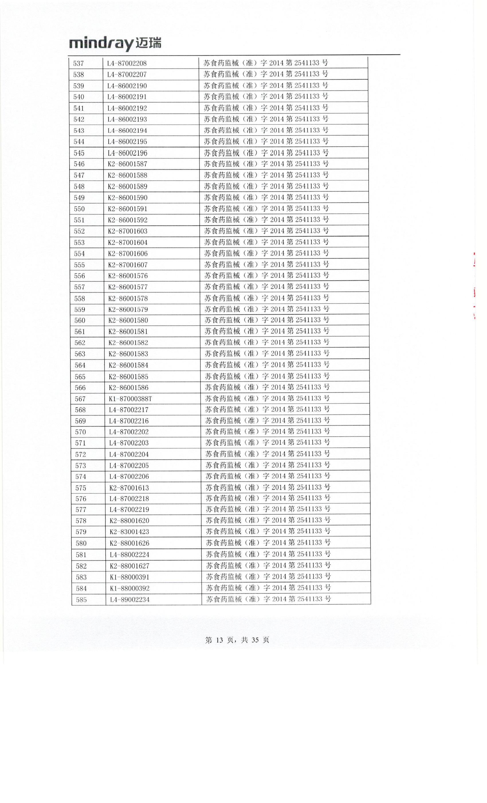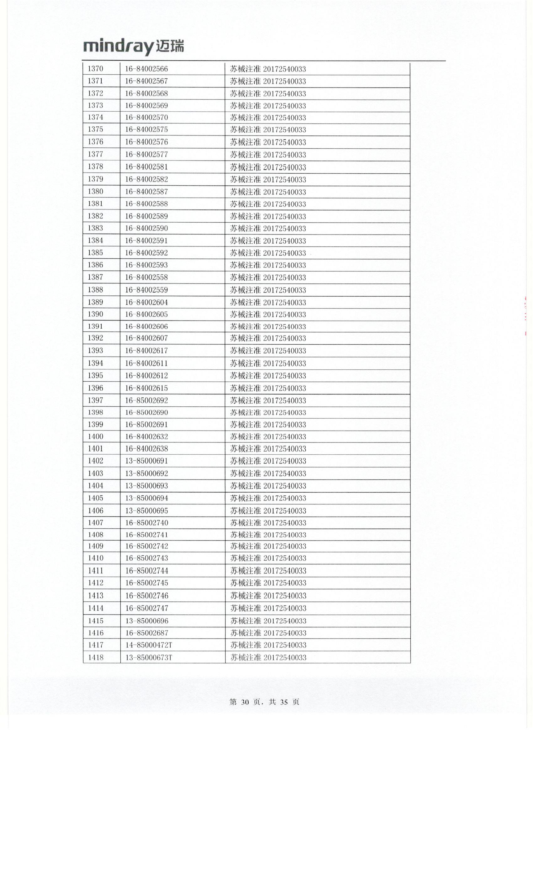 南京迈瑞生物医疗电子有限公司对LED手术无影灯、手术辅助移动式手术照明灯主动召回
