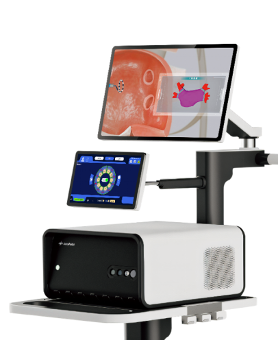 该产品由主机、显示器、脚踏开关、推车、连接线缆和电源线组成。采用脉冲电场的非热效应原理进行房颤治疗,与传统射频或者冷冻消融产品相比,可实现对心肌组织的选择性破坏,避免温度传递导致的周围组织损伤风险。同时,该产品还具有阻抗测量、心肌组织贴靠程度指示及导管与肺静脉对齐程度的指示,进一步提高电极与目标组织的贴靠质量,使更多药物难治性、复发性、症状性、阵发性房颤的患者受益。该产品核心专利技术为苏州艾科脉医疗技术有限公司自主研发。