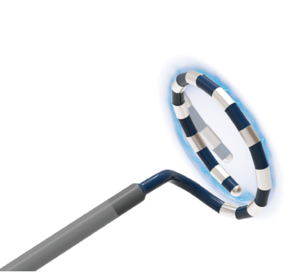 一次性使用脉冲电场消融导管由导管和导管连接线组成,其中导管由环状头端、金属电极、管身、标识管、手柄和连接器组成。环形脉冲消融导管独有7.5F管身,头端可调圈径设计,灵活应对不同解剖结构的肺静脉消融,配合消融仪智能化的贴靠提示和电极的灵活选择让术者在电生理手术中掌控自如,实现精准脉冲消融,该产品的12个月的安全有效性随访成功率达到87.7%,为快速性心律失常患者提供了简单、有效、更安全的治疗方案选择。